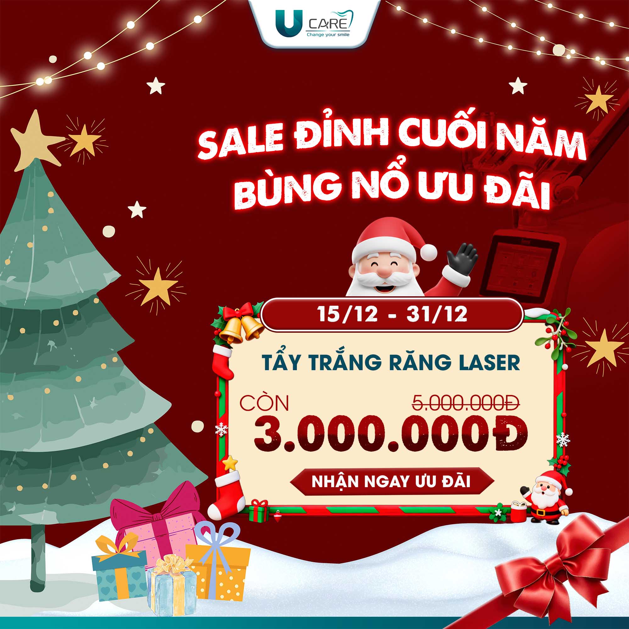 NHA KHOA UCARE – CHANGE YOUR SMILE Noel này, hãy để UCARE giúp bạn tự tin cười rạng rỡ trong mọi khoảnh khắc sum vầy bên người thân và bạn bè!